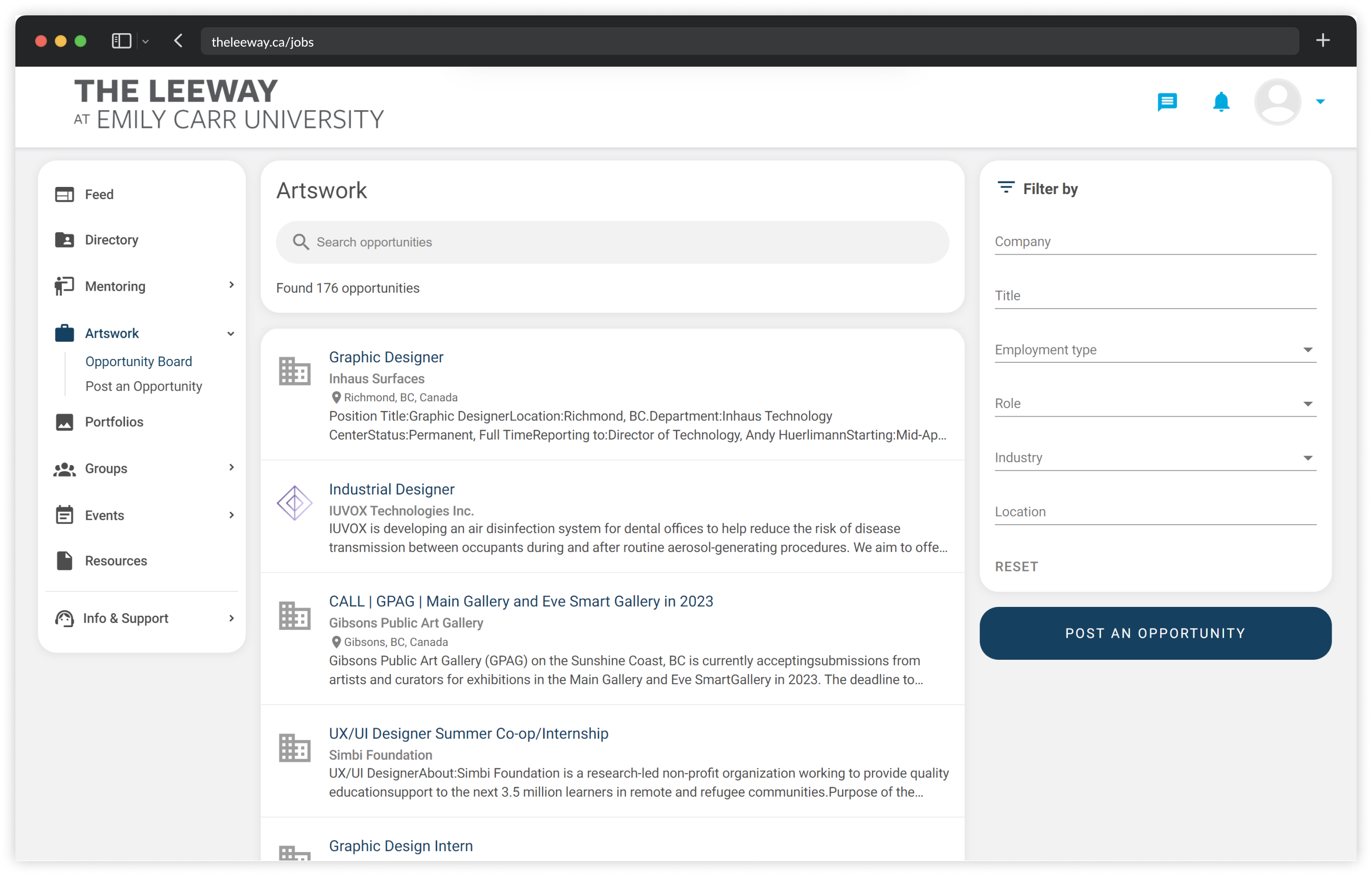 Find Work and Connect on The Leeway, Emily Carr’s job board and mentorship platform. Sign up today!